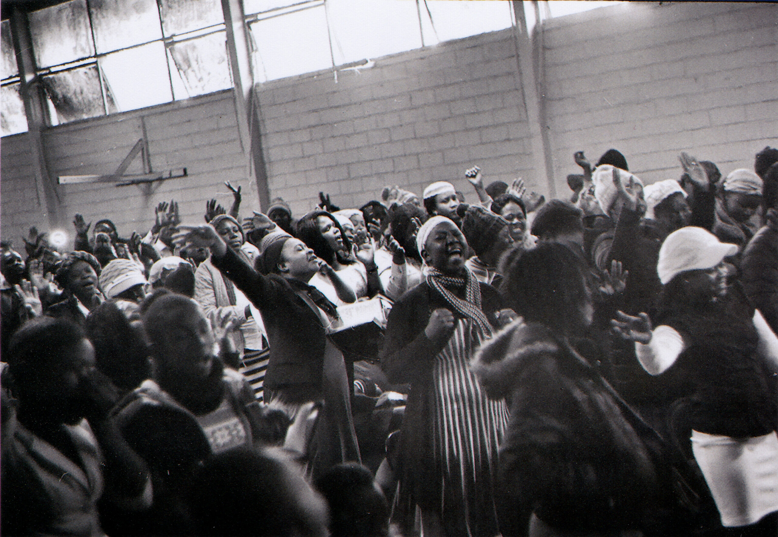Las almas comienzan a inquietarse, las corporalidades se extralimitan de la formalidad de los atuendos y comienzan a fluir desde la espiritualidad y lo mundano. Los acordes del bajo marcan vibraciones que llevan a los ojos a cerrarse, a las cabezas a inclinarse hacia un nuevo horizonte. El cielo de lata se lleva todas las miradas cuando la concentración de la oración permite abrir los párpados y cuando los cuellos se cansan de la inclinación de cuarenta y cinco grados al plano cenital, buscando un cielo prometedor.