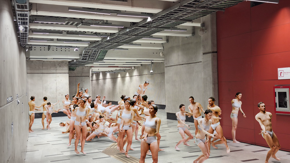 Volviendo a esta relación entre simulación y fuente, los creadores indican que recurrieron también a la inteligencia artificial para reinterpretar aquellos primeros movimientos captados por los dispositivos de captura. Es decir, lo que un cuerpo humano puede hacer, luego es procesado por un mecanismo que simula lo que considera podría seguir haciéndose con esos movimientos de base. Esta cuestión es trasladar la lógica de generación de imágenes y texto de la IA hacia el campo del movimiento, donde salvo en las animaciones digitales, no teníamos muchos antecedentes de su puesta en relación con un cuerpo real. Sin ir más lejos, todos hemos visto animaciones aberrantes, donde el “cuerpo representado” hace cosas que un “cuerpo real” no podría hacer y mientras se mantenía en ese espacio nos parecía incluso chistoso (como el material de “Skibidi toilet”, que en su absurdo se ha convertido en viral en Youtube). Pero prolongar esta relación hacia el cuerpo real es lo que definitivamente pasa a inquietarnos, tal como cuando uno jugaba Silent Hill y aparecían las enfermeras con movimientos similares a los de los intérpretes (humanos, pero fuera de lugar y entrecortados).