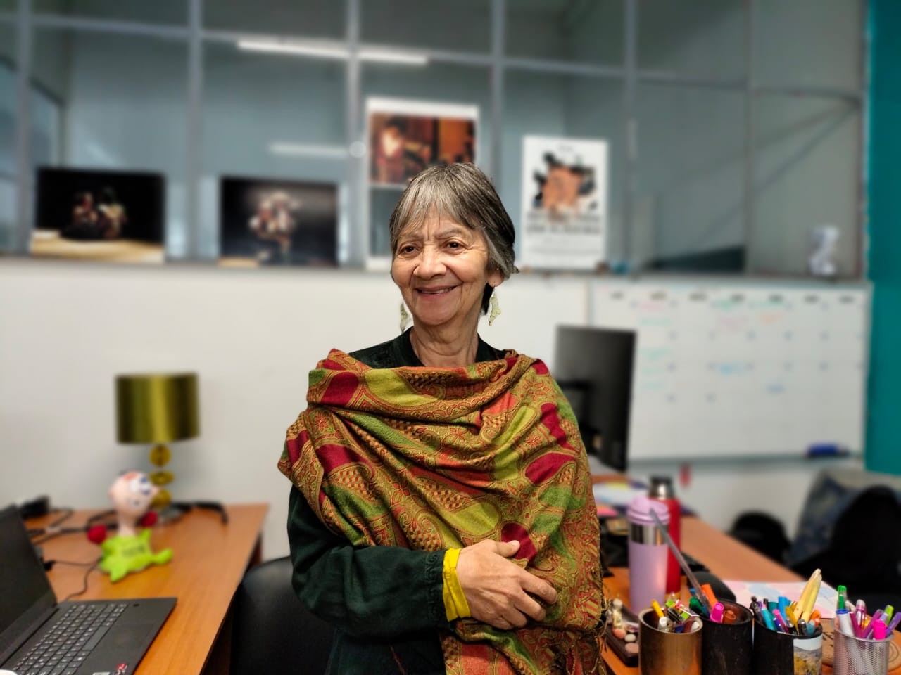 A principios del año 2022, Claudio Marín, director de la Escuela de Teatro de la Universidad de Valparaíso, me hace un encargo: hacer un libro sobre Myriam. En ese tiempo yo no sabía quién era ella y me puse a investigar. Fue así como se presentó la oportunidad de postular, a través de la Universidad de Valparaíso, al Fondo Nacional de Fomento de las Artes Escénicas, línea investigación modalidad archivos escénicos, adjudicándonos el fondo en enero del 2023 con el proyecto “Myriam Espinoza Vergara, 50 años dedicados al Teatro Social en Valparaíso. Valoración de la vida, obra y contribución a las Artes Escénicas de la destacada actriz y directora porteña”. Este proyecto tenía como esencia relevar el trabajo de una persona destacada de la historia del teatro chileno, historia que suele olvidar a los territorios que no son Santiago. Visibilizar y poner al centro la vida y obra de una mujer que ha dedicado su vida a la creación, a la militancia, a la formación, a la concientización, manteniéndose vigente y actualizándose constantemente.