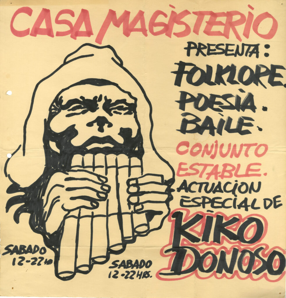 CG: Yo diría que, por lo menos en cuanto a la estética, hay elementos que son en común, que es este ambiente de cercanía, de camaradería, de horizontalidad, que no hay jerarquías entre el artista y el público. De hecho, hay algo muy simbólico de casi de todas las peñas, que es que el escenario estaba a la altura del público. Si bien había un equipo de organización, varios de los invitados también participaban en los menesteres propios de organizar un evento como una peña, que sería preparar el navegado, hacer las empanadas y también subirse a cantar. Esto se daba tanto en Valparaíso como en Villa Alemana, donde no hay que olvidar que también está el ejemplo de la Peña Magisterio de Villa Alemana, que fue un bastión de resistencia sumamente importante. También se mantiene el tema de la intimidad, el tema tal vez de la ornamentación, que es una ornamentación sobria, que trata de recordar a motivos chilenos.