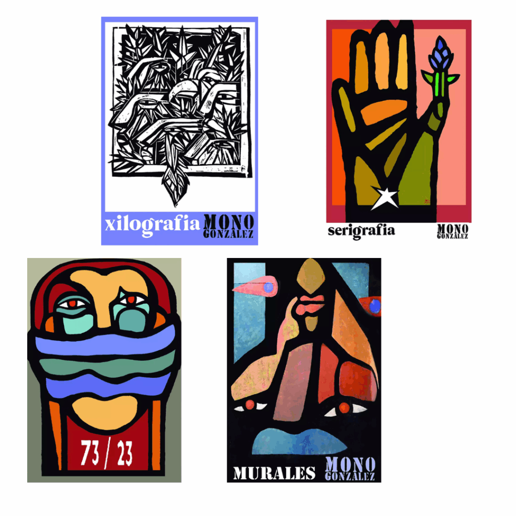 Como uno de los fundadores de la Brigada Ramona Parra, la mayor muestra del trabajo artístico de Mono González está en los espacios públicos, donde ha desarrollado una estética propia siempre vinculada a temas sociales, los pobladores y la política. Sin embargo, en esta Furia del Libro, el muralista y, como le gusta definirse, «trabajador del arte» presentará una nueva colección de cuatro libros que reúnen su obra: Carteles, Xilografías, Serigrafías y Murales.