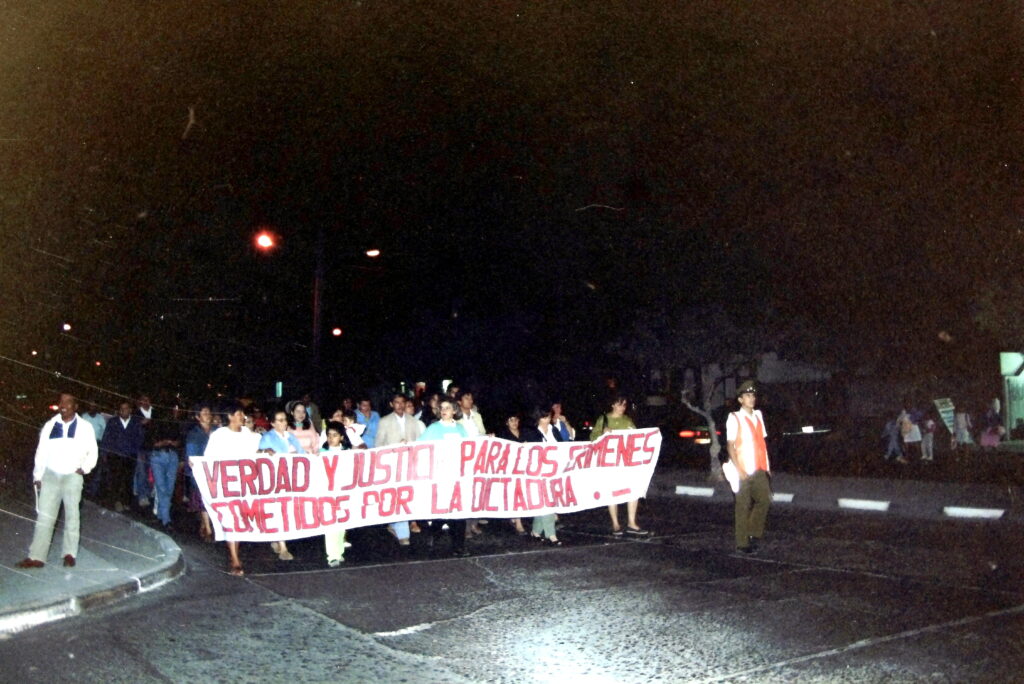Después fuimos conversando con los ex miembros del SERPAJ ochentero: Rosa Icarte, Ricardo Fuentes, Patricia González, Bernardita Araya, Ligia Vásquez y después con Patricia Godoy sobre la necesidad de entregar este material para el resguardo patrimonial. Y sin querer nos fuimos convirtiendo en las y en los guardianes de la memoria, invitados también a ser parte de las rutas por la memoria del INDH, participando activamente en la conmemoración de los 50 años del golpe civil militar, instalando placas y Siluetas de la Memoria, para promover la resignificación del espacio urbano como soporte de memoria colectiva donde intentamos preservar, proteger y transmitir la memoria histórica, manteniendo vivo el recuerdo de las víctimas y sus luchas y transmitiendo estas memorias a nuevas generaciones para que no se repitan las violencias del pasado, porque seguimos resistiendo al olvido impuesto y al negacionismo político.