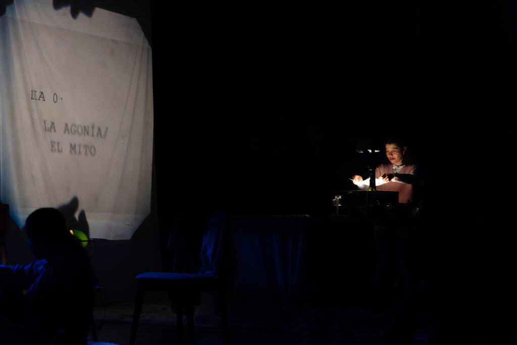 Durante la investigación ocurrió un hecho muy significativo: falleció el abuelo de Alejandra Díaz. Por supuesto fui a acompañarla, y me encontré con el primer día de la Shivá. Al presenciar la potencia de ese rito, que me pareció profundamente sabio y sanador, le propuse que fuera nuestro dispositivo escénico. Nos ofrecía la posibilidad de estructurar el relato de manera clara y, sobre todo, de concluir simbólicamente lo pendiente: el duelo de Diana y, a través de ella, el duelo inconcluso de tantos.
