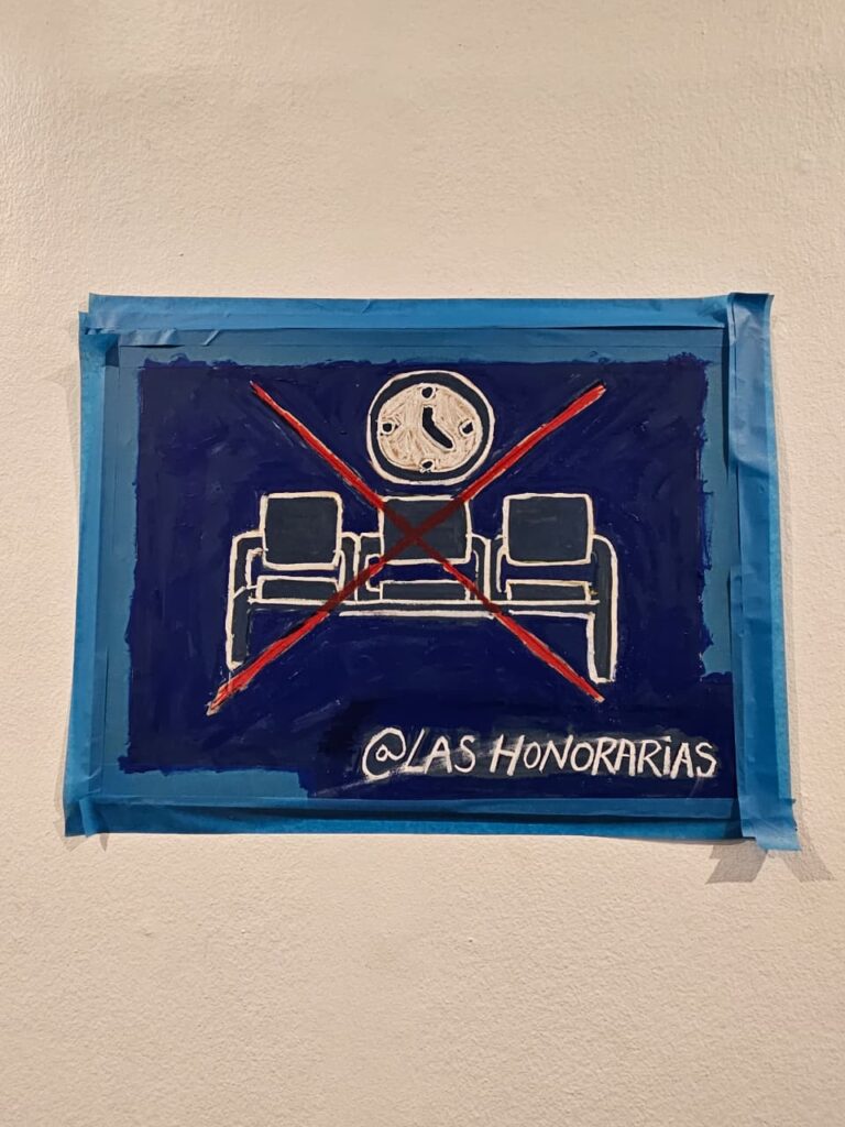 “Yo trabajaba en la Junaeb, y Loreto en el Sename, y teníamos ese taller después de la jornada laboral. Era agotador. Decíamos, ¿en qué momento vamos a hacer el proyecto? ¿En qué momento vamos a ser artistas? Y después nos dijimos, no, en todos los momentos somos artistas. A partir de eso, empezamos a cuestionar la idea del trabajo, y nos pusimos Las Honorarias porque nunca nos han contratado en nuestra vida”, relata.