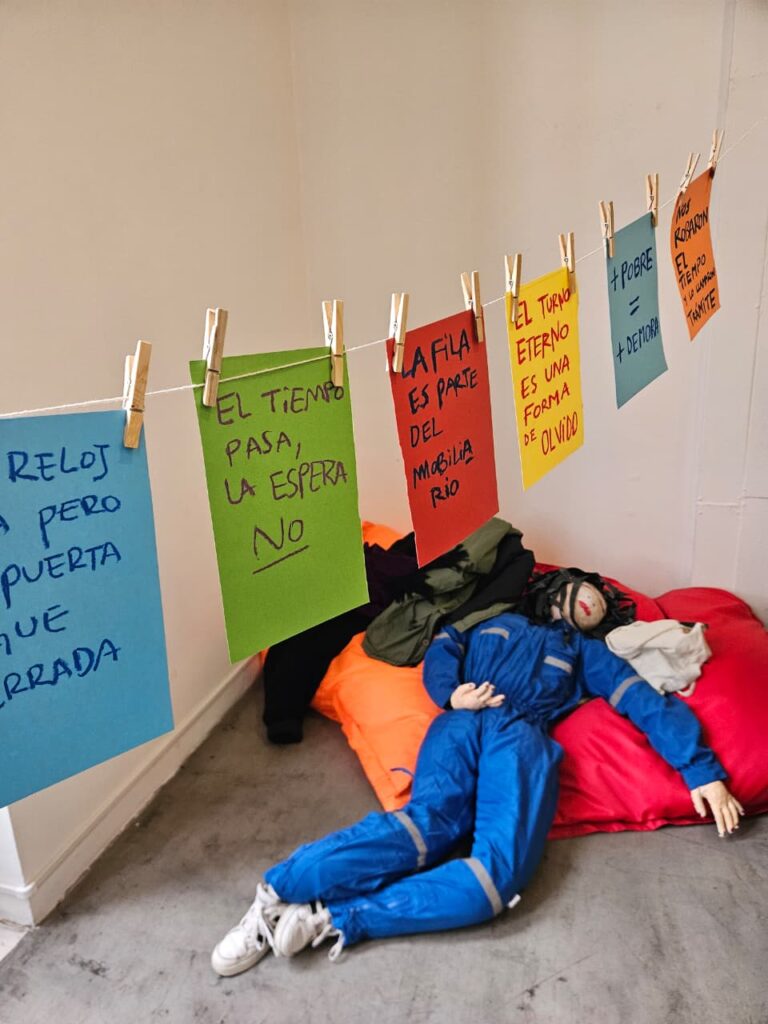 Roery: Porque la cuestión de la espera es clasista. Por ejemplo, el otro día le mandamos a un profesor la propuesta y nos comentó que éramos «graciosas». Bueno, el proyecto es gracioso y siempre buscamos comunicarnos con humor. Pero también, yo entiendo que un Comité Anti Espera para alguien que no ha esperado casi nada, es un chiste. Pero si vamos a presentarnos en un hospital es muy distinto. Porque la espera de las personas que tienen menos acceso y menos capital, es bien cruda y triste.