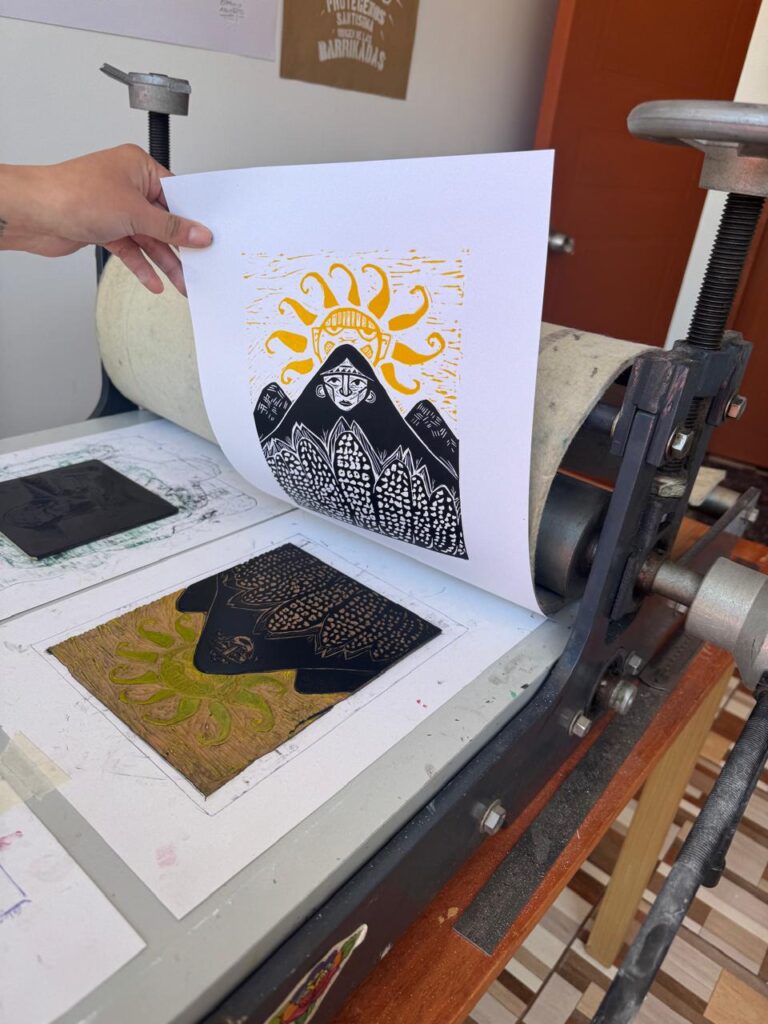 Era un sueño, un anhelo, porque igual Lima es una ciudad súper racista y xenófoba. Sobre todo por el tema racial, y también Lima vota siempre a la derecha. Como dice Rosa hay una desconexión fuerte, entonces, era jodido. Además nuestra producción gráfica siempre ha tenido que ver con la defensa de la tierra. Entonces, era como, ¿qué hacemos acá? ¿Nos movemos? Y también por una cuestión económica. O sea, vivir en Lima es casi imposible, alquilar una casa o un espacio pequeño es muy caro, o tienes que irte muy lejos de la zona más céntrica. Entonces, por ahí también, económicamente, nos dimos cuenta que sí nos convenía venirnos acá, pues, a pesar que ha subido todo, igual sigue siendo más rentable, más accesible. Por ahí todo confluye para que estemos acá. Como dice Rosa, lo que intentamos ahora pues, es comenzar a hacer lo de antes, pero acá, dentro del barrio, porque vivimos en un barrio. Entonces, ahí estamos viendo, planeando cómo lo vamos a hacer.