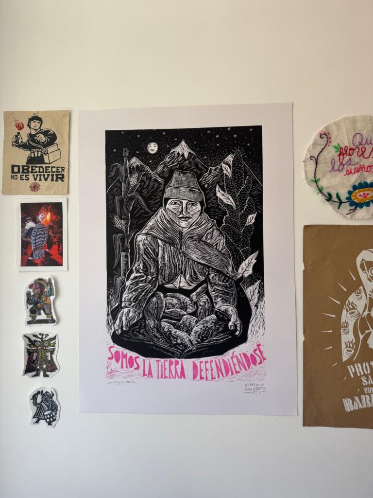 En esta década, su trabajo se ha diversificado, pasando por la gráfica digital, el mural comunitario, la propaganda callejera en contexto de movilizaciones y el grabado. Durante una semana estuvimos compartiendo, conociendo su trabajo y las redes que los están conformando en su vida actual que se desarrolla en el Cuzco.