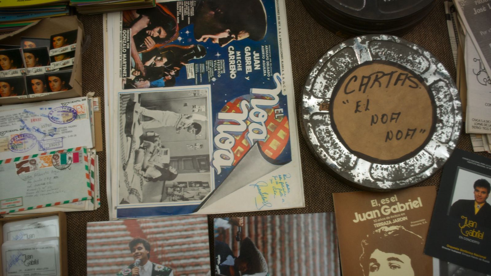 Junto con los materiales, aparece la voz de Juan Gabriel que dice: “Se está haciendo un video para cuando no esté en este planeta, para dejarlo como testimonio. Es una época muy hermosa de mi vida y he querido así compartirla con ustedes”. En un gesto de invocación, Juan Gabriel nos habla desde un lugar que va más allá de su vida finita. Dentro de sus múltiples inquietudes, también fue archivista y documentó la mayor parte de su vida en una bodega que reúne más de 2000 archivos fílmicos.