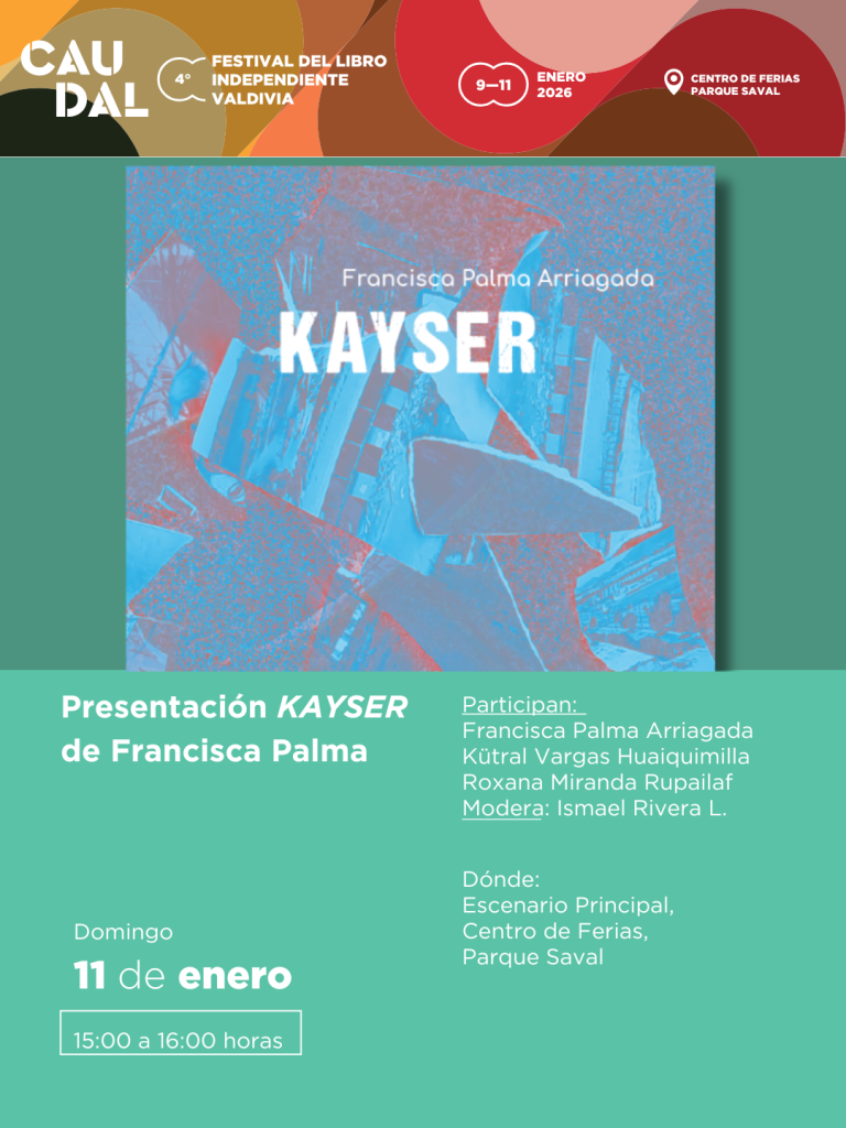 Kayser, de la escritora, periodista y editora de Revista La Raza Cómica, Francisca Palma Arriagada, visita desde la poesía lo ocurrido el 20 de octubre de 2019 cuando Yoshua Osorio, Julián Pérez, Andrés Ponce, Luis Salas y Manuel Muga fueron encontrados quemados en la bodega de Kayser, ubicada en Renca. Publicado por Oxímoron Ediciones, el poemario se presentará el domingo 11 de octubre en Festival Caudal de Valdivia, junto a las escritoras Roxana Miranda Rupailaf.