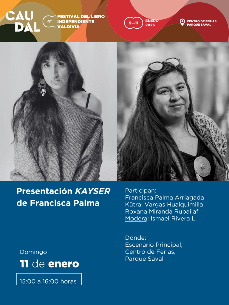 Prontamente, el domingo 11 de enero a las 15:00 hrs. será presentado como parte de la programación del Festival Caudal en Valdivia, ocasión en la que la autora estará acompañada de las poetas Roxana Miranda Rupailaf y Kutral Vargas Huaiquimilla.