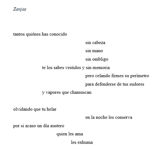 Los presentes poemas son parte de una colección titulada de ciertos desiertos. Esta corresponde a una cartografía que, a pesar de su apariencia monográfica, no habla solamente de los elementos que constituyen el paraje, sino de la ficticia membrana que les configura como entidades distintas. Traza rutas que le permiten a los cuerpos saberse inseparables del territorio, conocerse como cuerpos-territorios.