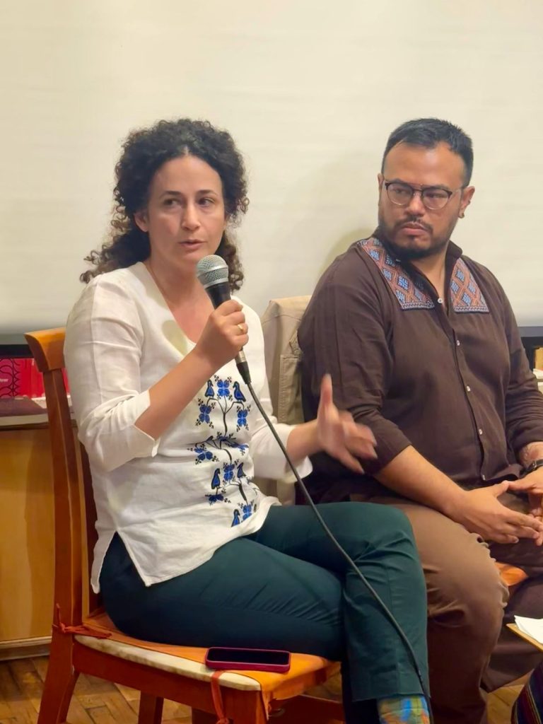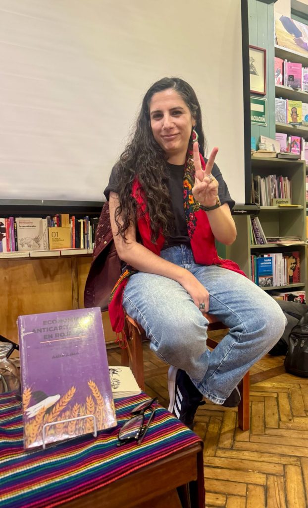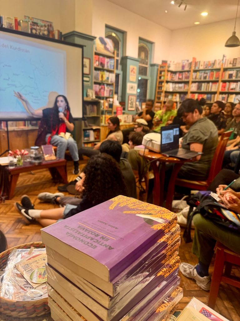 Una de las experiencias presentadas, estuvo a cargo de Azize Aslan, ella es economista y Dra. en sociología, es de origen kurdo y desde hace 10 años que vive en México, en este tiempo se ha dedicado a difundir el proceso de liberación del Kurdistán junto con estudiar sus sistemas económicos señalando alternativas que permitan orientar otras formas de vida que entren en disputa contra el régimen capitalista, una de sus publicaciones se encuentra “Economía Anticapitalista en Rojava: Las contradicciones de la revolución en la lucha kurda”, Editado por Bajo Tierra.