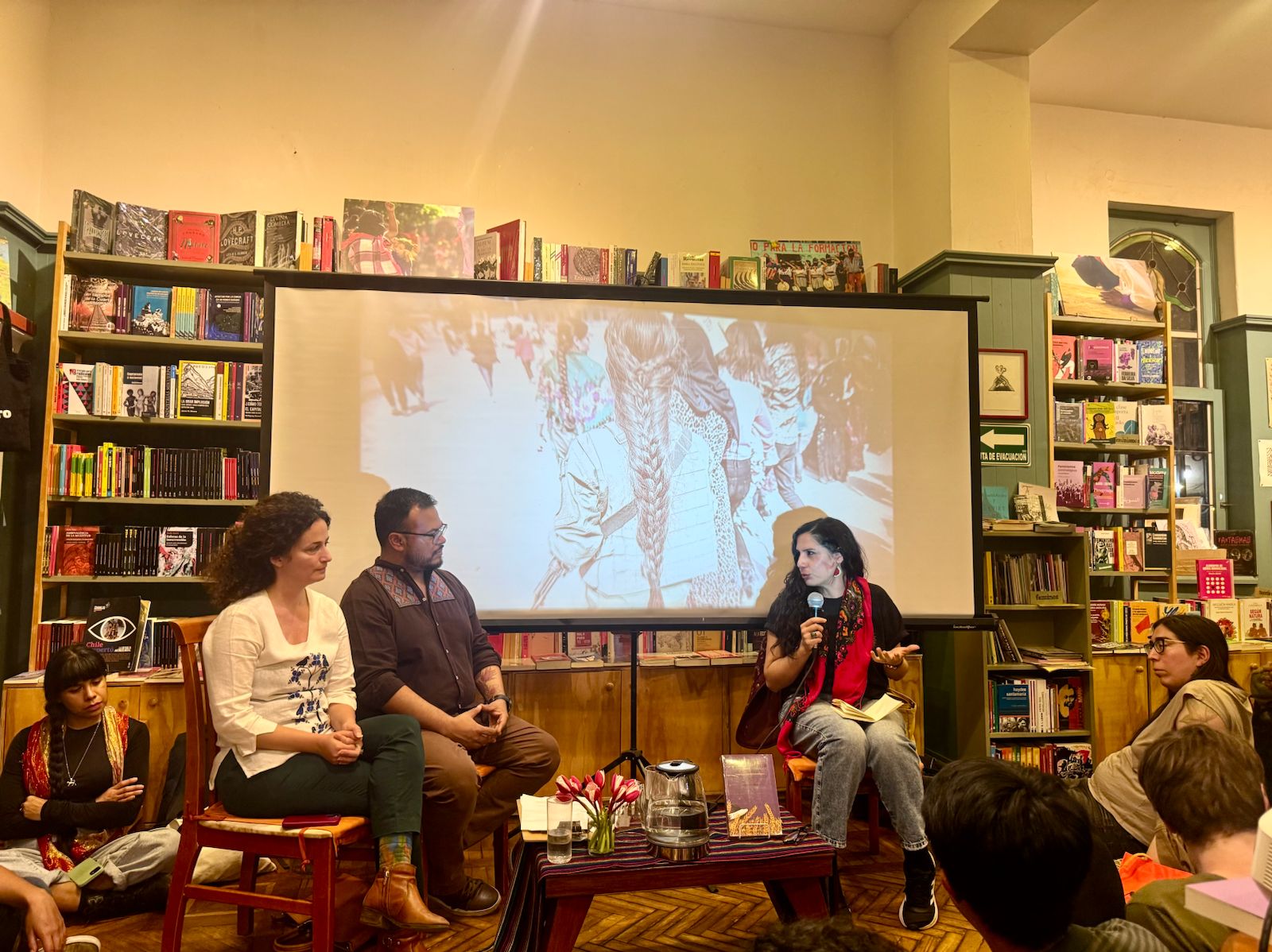 Una de las experiencias presentadas, estuvo a cargo de Azize Aslan, ella es economista y Dra. en sociología, es de origen kurdo y desde hace 10 años que vive en México, en este tiempo se ha dedicado a difundir el proceso de liberación del Kurdistán junto con estudiar sus sistemas económicos señalando alternativas que permitan orientar otras formas de vida que entren en disputa contra el régimen capitalista, una de sus publicaciones se encuentra “Economía Anticapitalista en Rojava: Las contradicciones de la revolución en la lucha kurda”, Editado por Bajo Tierra.