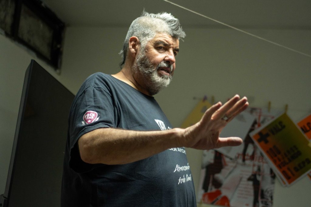 El paso de Walterio por la región chilena a fines del año pasado, tuvo de todo: presentación en un seminario de gráfica en la Universidad Alberto Hurtado, participación en las últimas dos ferias Kontrabando del 2025, y por último, talleres y charlas abiertas en la Imprenta Comunal de Pudahuel, invitado por la Escuela Gráfica Popular. Para quienes honramos el oficio tipográfico, no ha significado exclusivamente la visita y tránsito de un exponente que no se reconoce a sí mismo como “artista que vende su arte”. Para nosotrxs significa, más bien, haber tenido la oportunidad –y el privilegio– de escuchar, de aprender y de construir comunidad.
