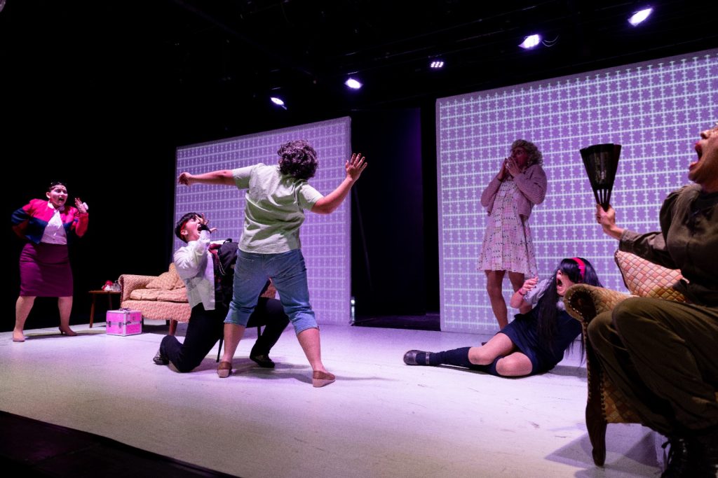 Volviendo al montaje, en lo actoral destaca el trabajo de Franco Falcón como la profesora Francisca. Este personaje funciona como la voz de la sociedad: dice intentar proteger, pero finalmente busca disciplinar, castigar y hacer sentir culpable a Antofagasta por lo que hizo; y ha reprimido sus propios deseos con tal de ser un ejemplo para sus estudiantes. Falcón construye un personaje que expone con crudeza el actuar de la sociedad, pero sostenido en un tono que potencia la dimensión de comedia negra del montaje. Por otro lado, Malvo Sánchez dota de gran ternura al personaje de Pato Piñata, siendo un contrapunto necesario para el desarrollo del montaje que, hacia el final, se inclina hacia lo dramático. El elenco lo completan Nelly María, María Teresa y La vendedora de cosméticos (Juanita Lara, Eduardo Vial y Pamela Jaque, respectivamente), quienes llevan a escena a una madre sobreprotectora e ingenua, a la amiga de la madre que se debate entre seguir sus deseos o los mandatos sociales, y a una vendedora víctima de violencia que decide tomar la justicia por sus manos. Es un universo femenino que expone distintas miradas sobre historias y violencias en común.